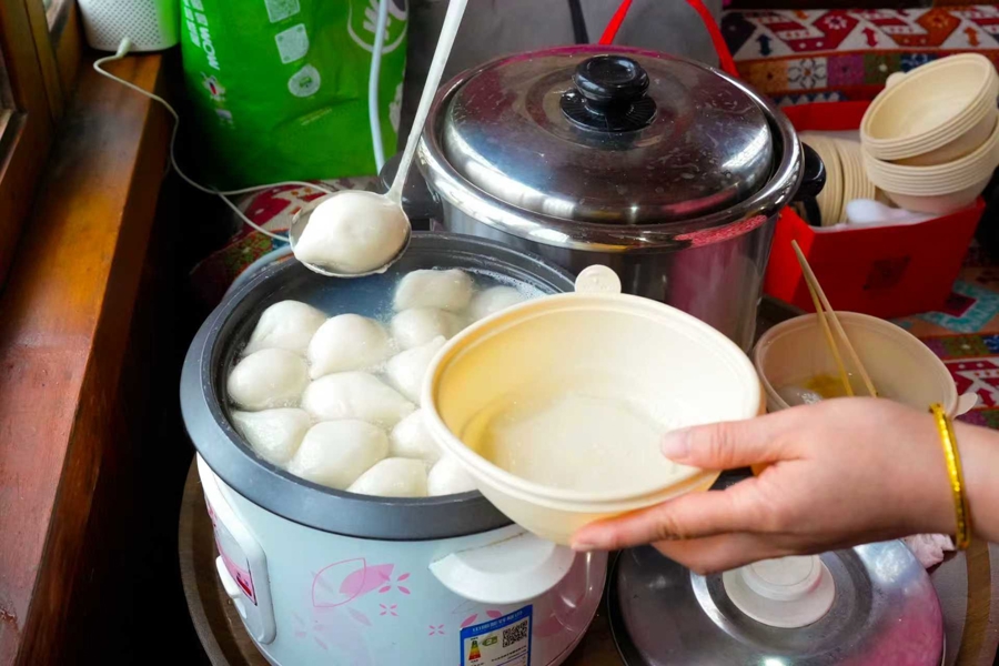 活动场地骊珠舫临水而建,环境雅致。除了免费手作的汤圆,骊珠舫还推出了元宵新品——咖啡汤圆,不同于手作款,这款汤圆将芝麻的醇香与咖啡的醇厚相融,游客可自行购买品尝,解锁元宵风味新选择。完成手作后,不少市民选择体验水上围炉煮茶,将亲手制作的汤圆现场烹煮,在水波荡漾中品尝现包现煮的暖意与香甜。